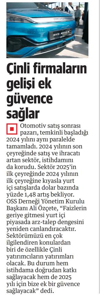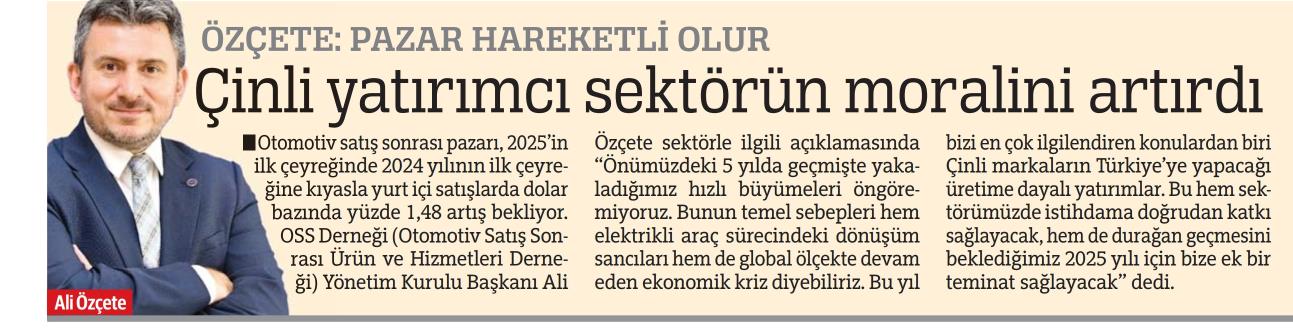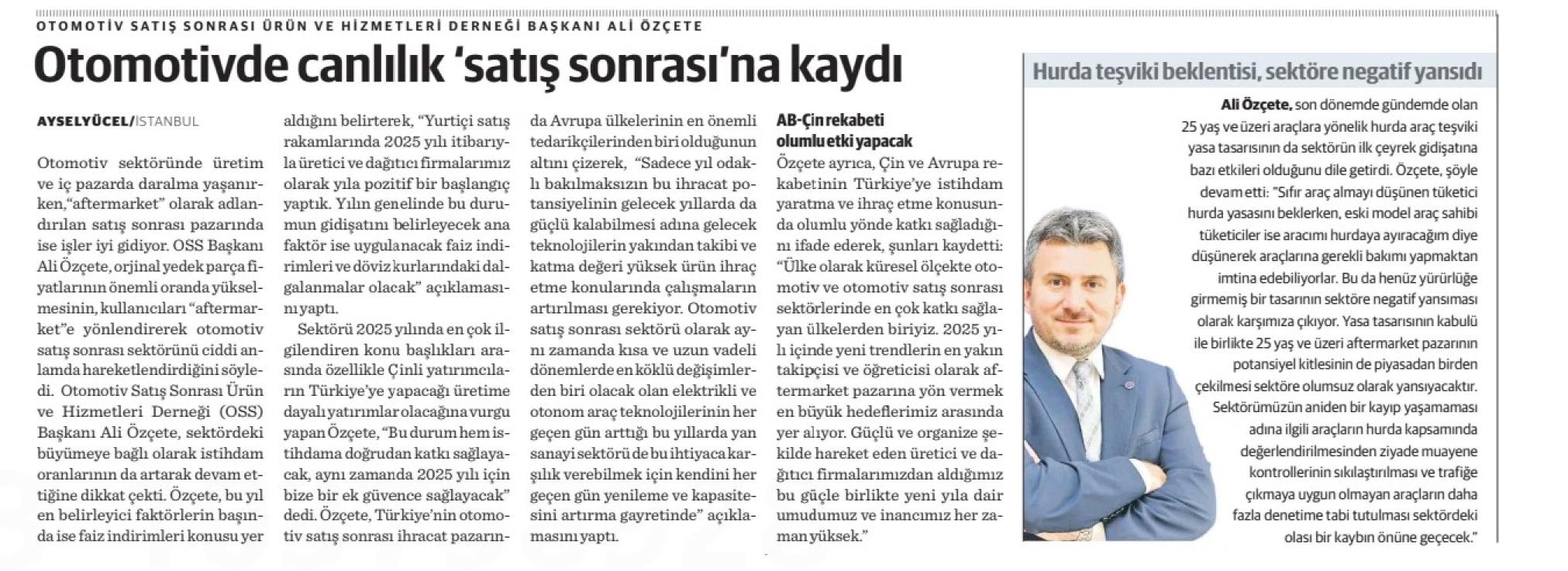 Otomotiv Satış Sonrası Ürün ve Hizmetleri Derneği'nden Değerlendirme Anketi / 20.01.2025 Milliyet