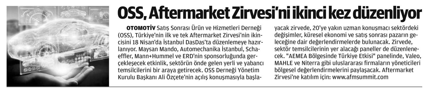 Otomotiv Sektörü Aftermarket Zirveside Buluşacak / 15.03.2025 turkiyegazetesi.com.tr